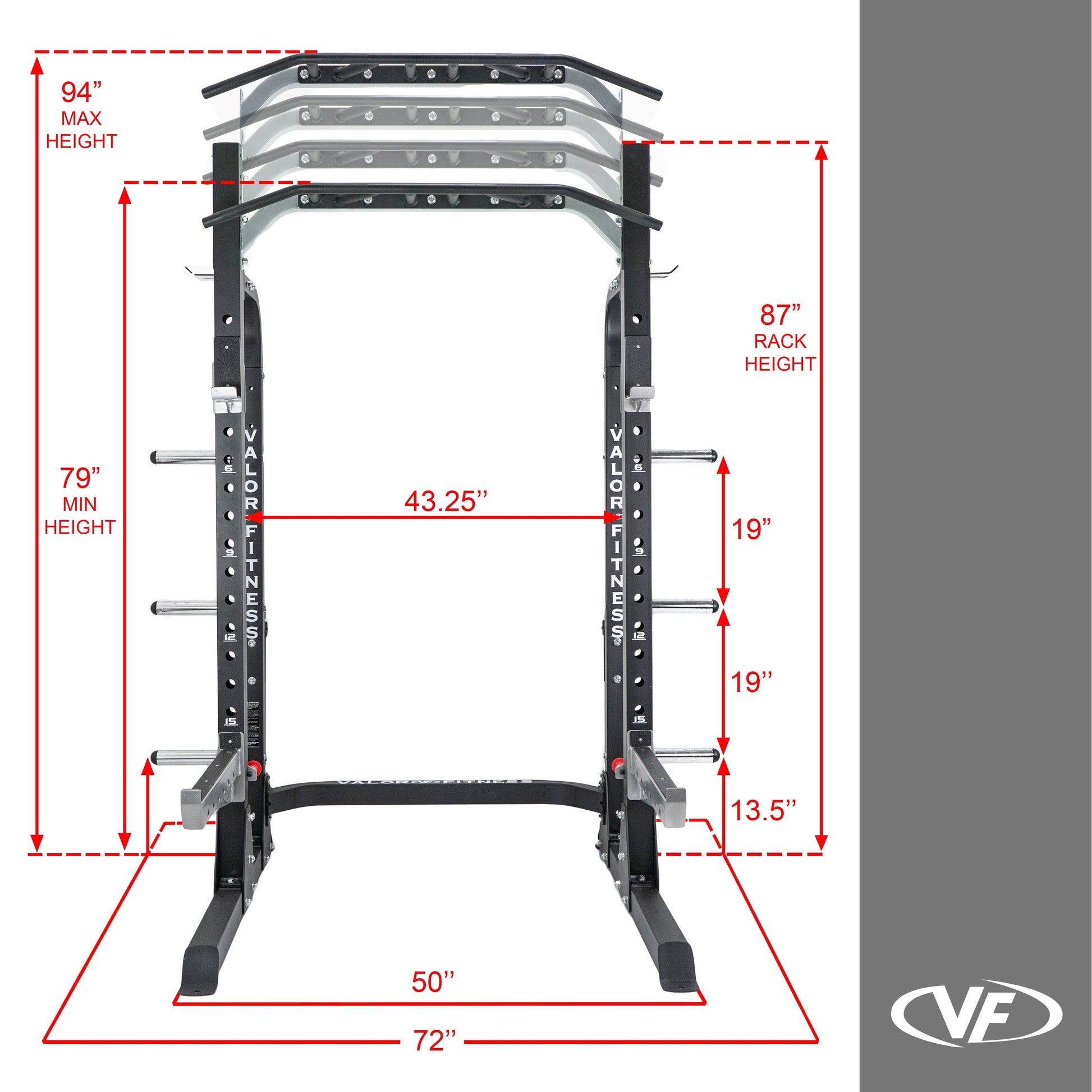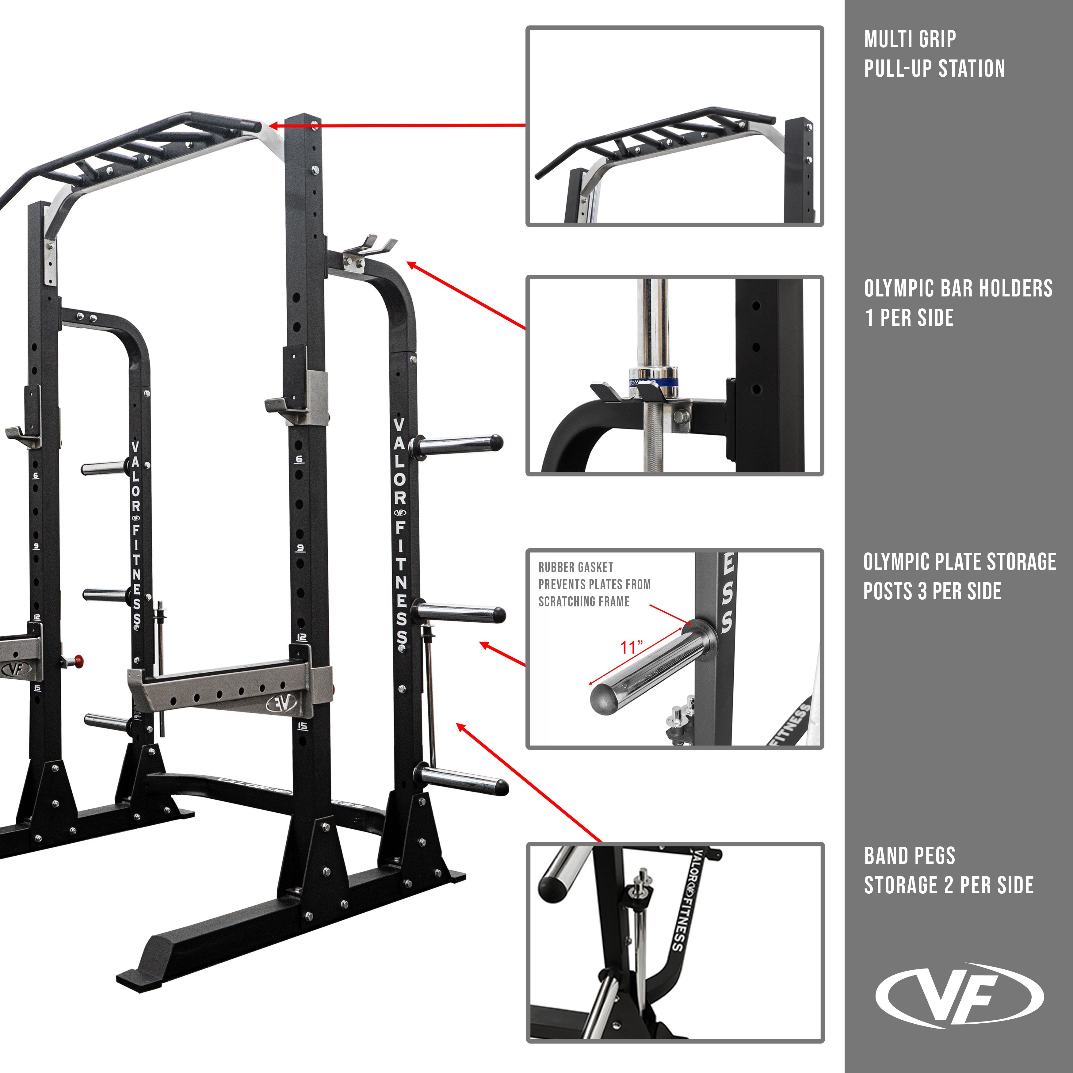 Enhance your strength training with the Valor Fitness Half Rack, a durable and versatile piece of equipment designed for home and light-commercial gym use. This squat rack is an essential tool for a wide range of exercises, offering stability and functionality in one compact unit. The Valor Fitness Half Rack is not just a piece of equipment; it's a complete solution for your strength training needs. With its heavy-duty construction, versatile features, and storage capabilities, it's the ideal choice for anyone looking to elevate their home gym setup.
