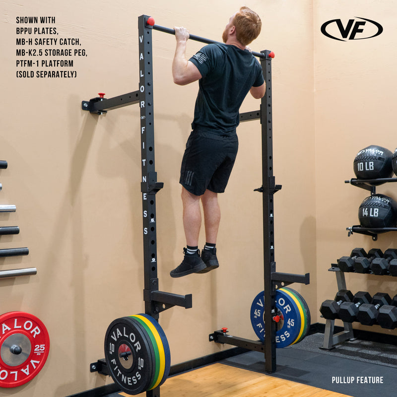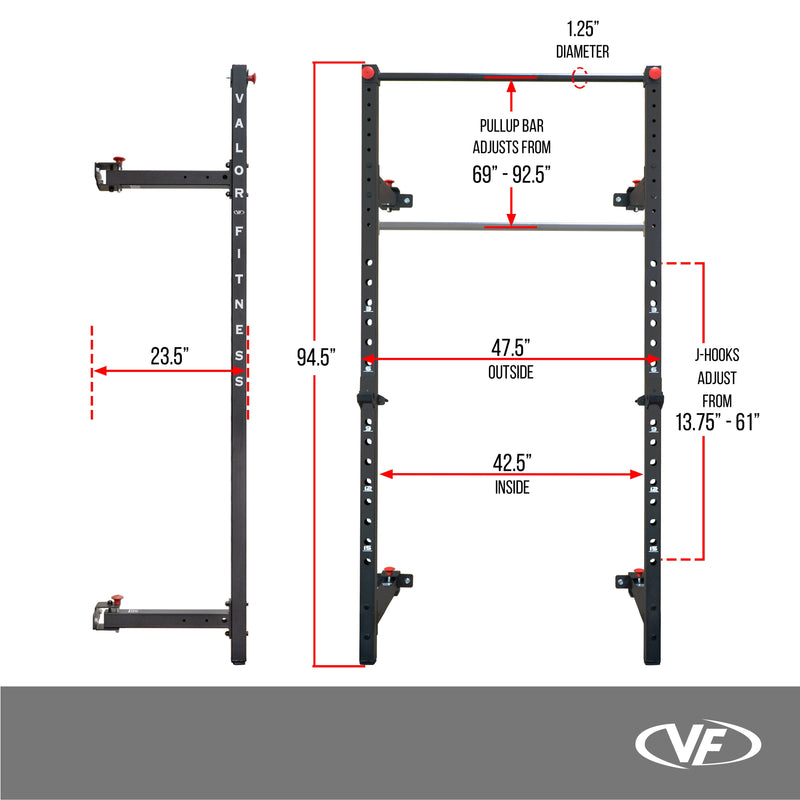 - SPACE-SAVING DESIGN: This Wall Mounted Squat Rack folds flat against the wall when not in use, opening valuable floor space in your workout area for other strength, functional, or cross-training workouts.