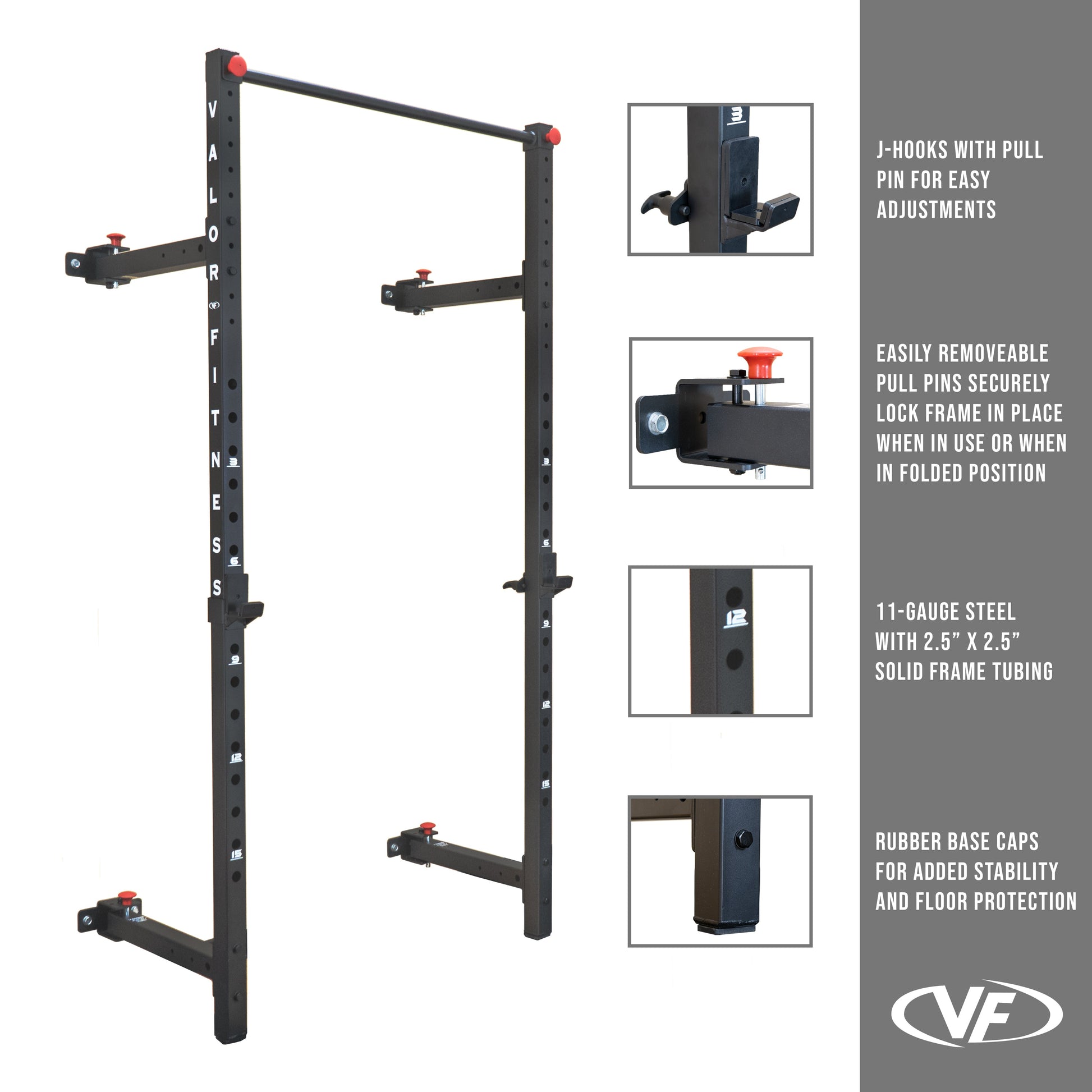 - MULTI-FUNCTIONAL & ADJUSTABLE: This compact, foldable power rack adapts to your needs. Adjustable J-hooks support both squats and bench presses, while the customizable pull-up bar allows for a variety of upper-body exercises. Designed for versatility, it provides ample working space and height adjustability to suit different users and workouts.