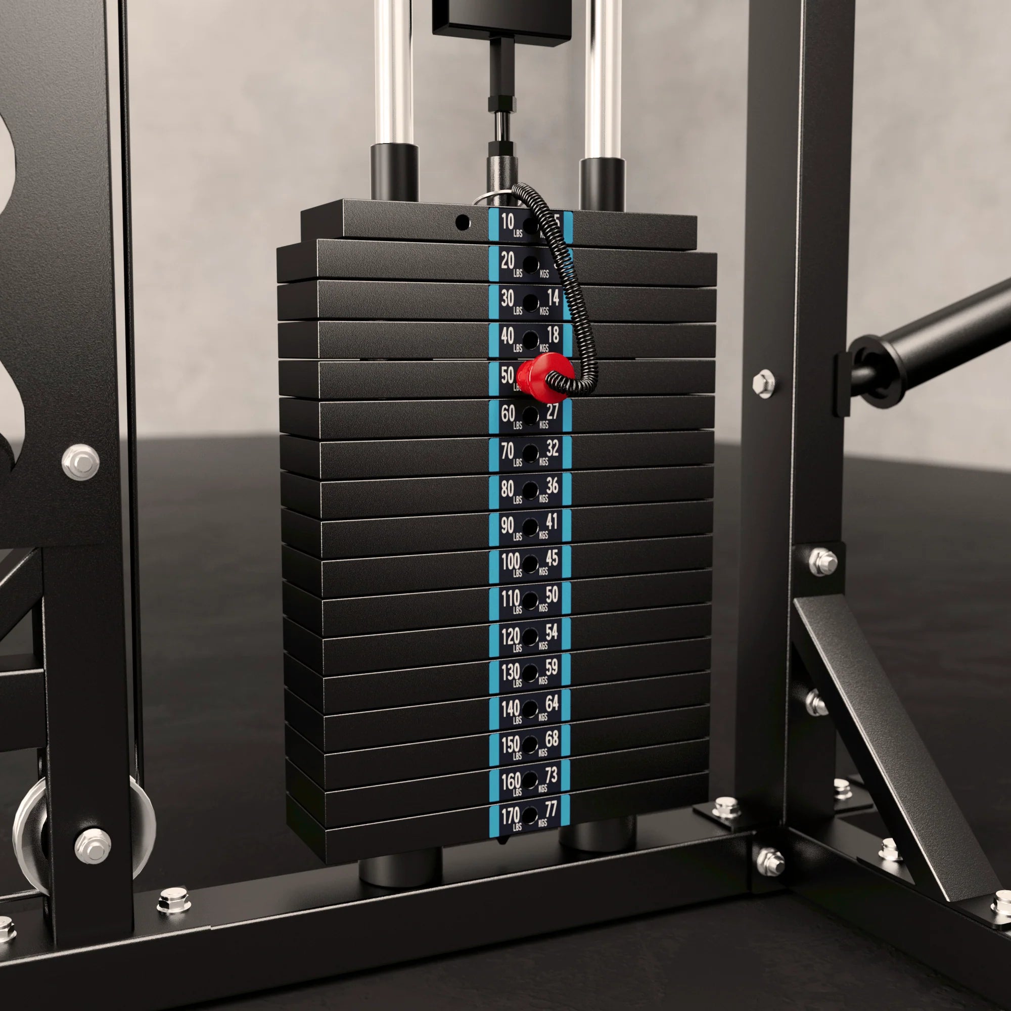 170 lb weight stack on each side: Ideal for both strength training and accessory work.