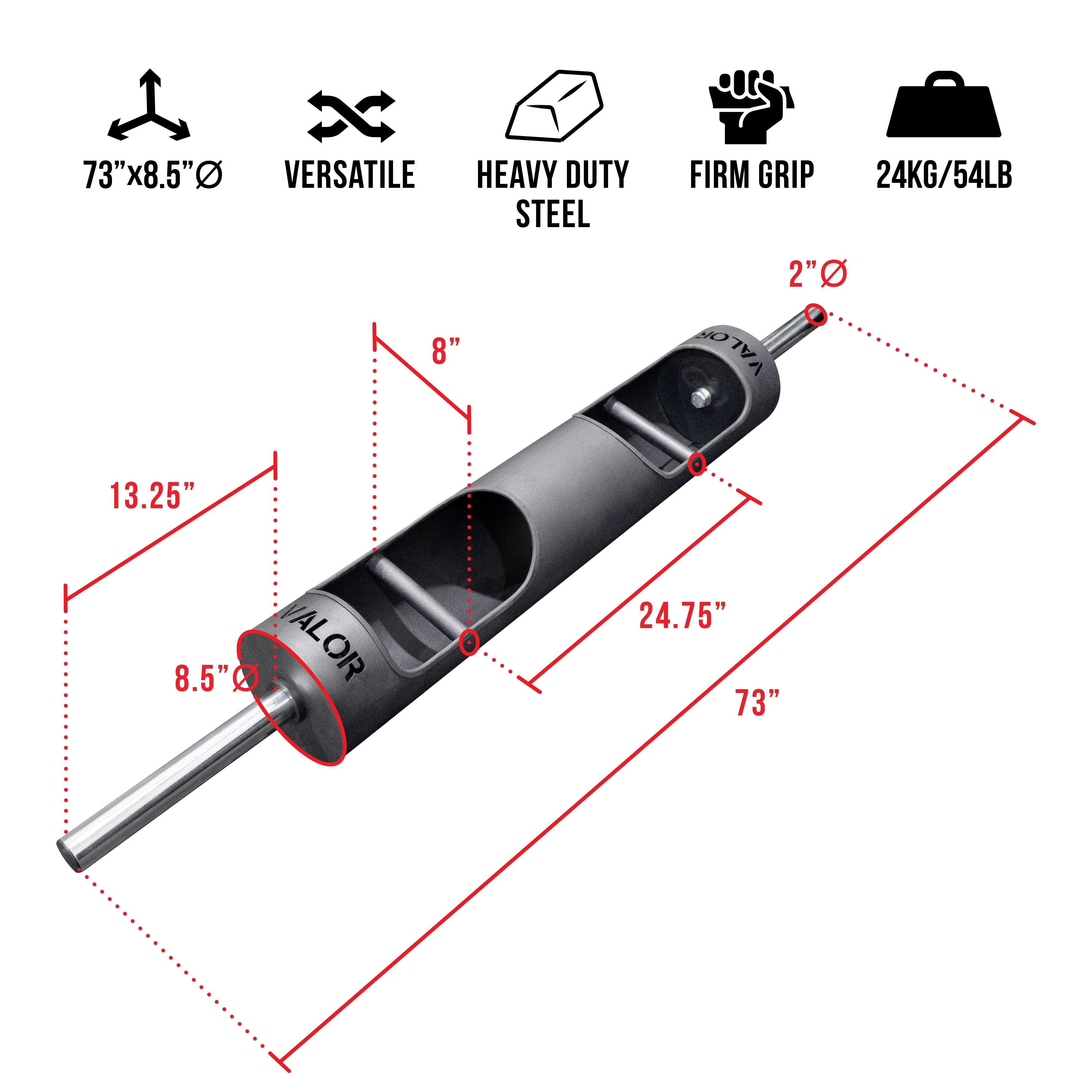 Take your strongman workouts to the next level with the Valor Fitness Log Bar. This is your ultimate tool for log lifting and full-body power development. Whether you're training for your first log press or fine-tuning your log lift technique, this specialty bar delivers the awkward challenge of real-world objects with a design built for both competition and at-home log training. Perfect for presses, cleans, jerks, and more, the log press bar is a must-have for serious strength athletes.