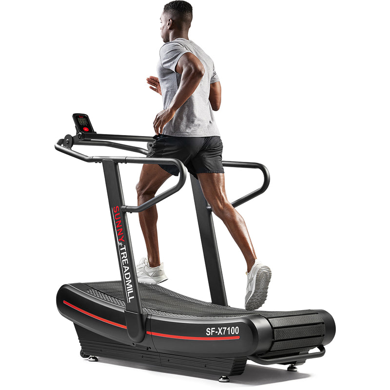 The curved, ergonomic running surface naturally matches your stride, encouraging proper running mechanics and delivering a low-impact yet powerful workout. With 16 adjustable magnetic resistance levels, this treadmill lets you seamlessly switch between walking, jogging, or all-out sprinting — making it ideal for HIIT, endurance, and performance training.