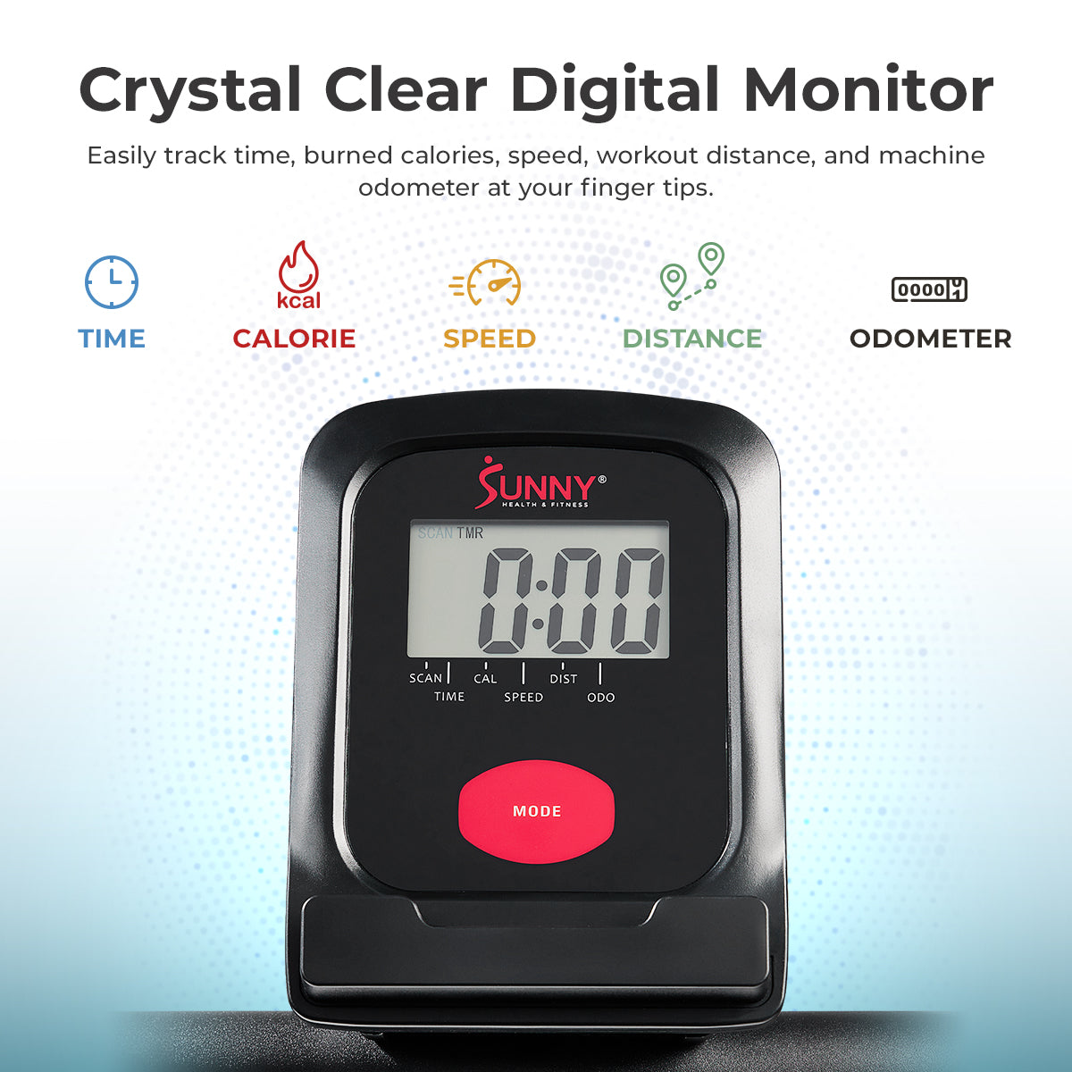 Digital performance console: Tracks time, speed, distance, calories, and more for precise training feedback.