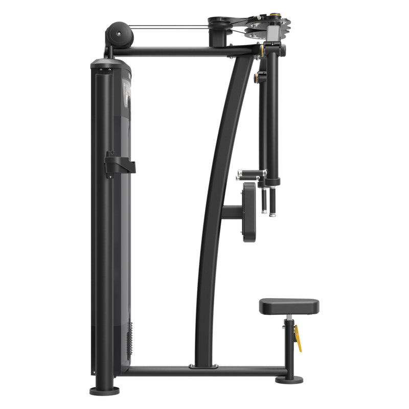 Featuring a 235 lb selectorized weight stack, it enables smooth, adjustable resistance for users of all strength levels. The machine includes adjustable arms and seat height to ensure proper alignment for each movement, while the heavy-duty commercial steel frame and precision cable system are engineered to handle consistent use in demanding training environments.